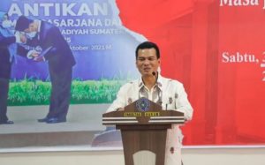 Usai sambutan Rektor, Wakil Dekan III Fakultas Hukum UMSU Dr Zainuddin SH MH menyempatkan menyampaikan testimoni tentang sosok ibu Ida Hanifah.