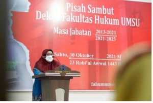 Medan || Acara Pisah Sambut Dekan Fakultas Hukum Universitas Muhammadiyah Sumatera Utara (UMSU) berlangsung penuh keharuan. Kepemimpinan Assoc Prof Dr Ida Hanifah SH MH yang menjabat sebagai Dekan Fakultas Hukum UMSU periode 2017-2021 yang baru saja purna bakti dilanjutkan oleh Dr Faisal SH MHum sebagai Dekan Fakultas Hukum UMSU untuk periode 2021-2025.
