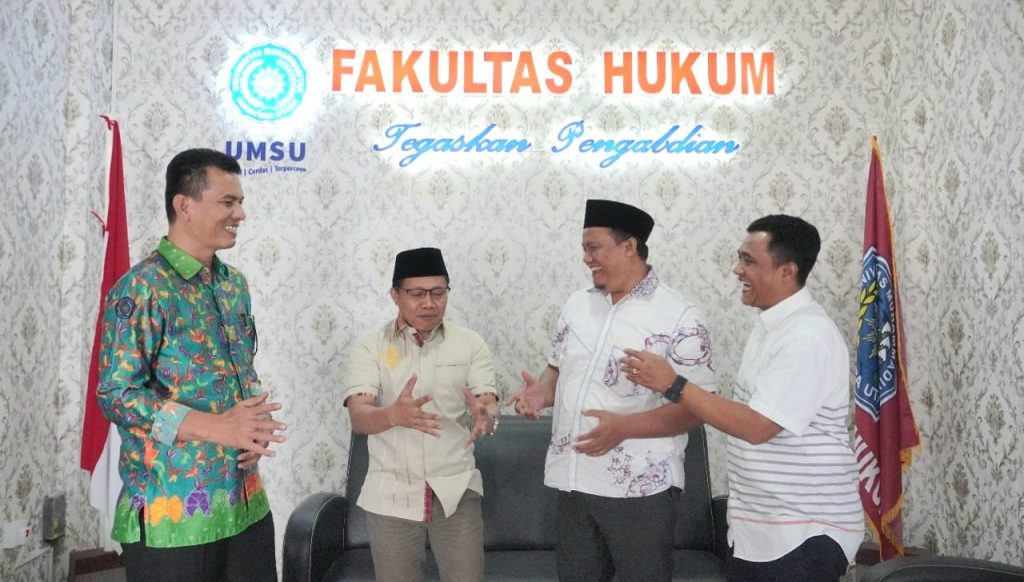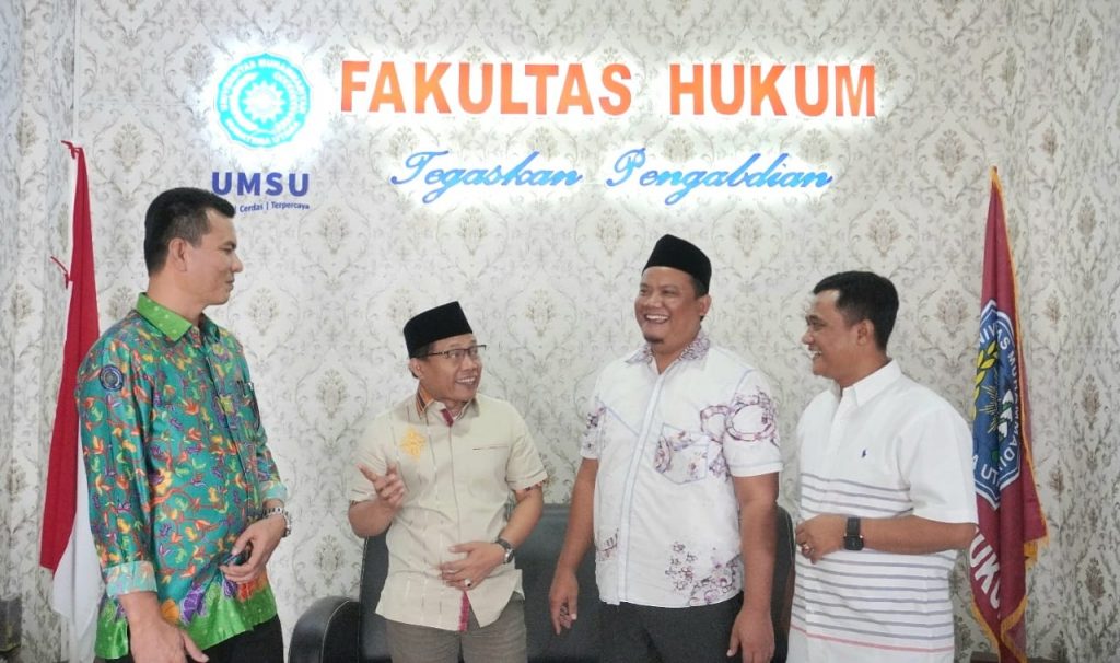 Banyak hal yang menjadi pembicaraan pada diskusi singkat yang dilaksanakan di ruang Dekan Fakultas Hukum UMSU. Tegaskan pengabdian yang merupakan tagline dari Fakultas Hukum UMSU dan juga bagian dari Tri Dharma Perguruan Tinggi menjadi poin penting pembicaraan antara Cak Nanto dengan Dekan Fakultas Hukum UMSU Dr. Faisal S.H.,M.Hum.
