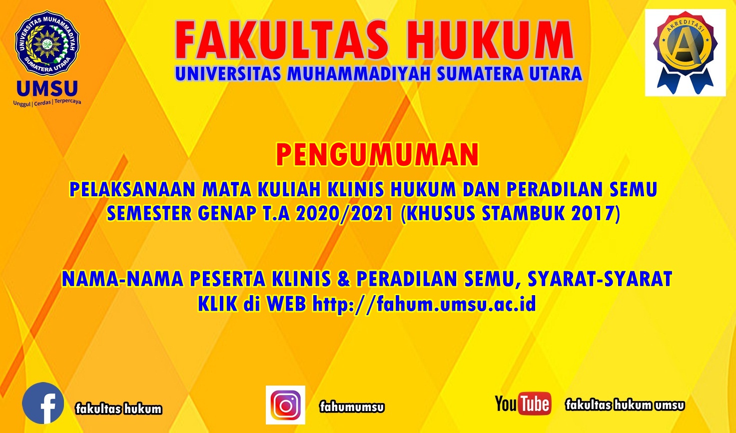 Read moreDetailsLink Meeting Zoom Topic: PENDADARAN/PEMBEKALAN PERADILAN SEMU Time: Jan 14, 2021 10:00 AM Jakarta Meeting ID: 597 465 3593Passcode: UMSU...