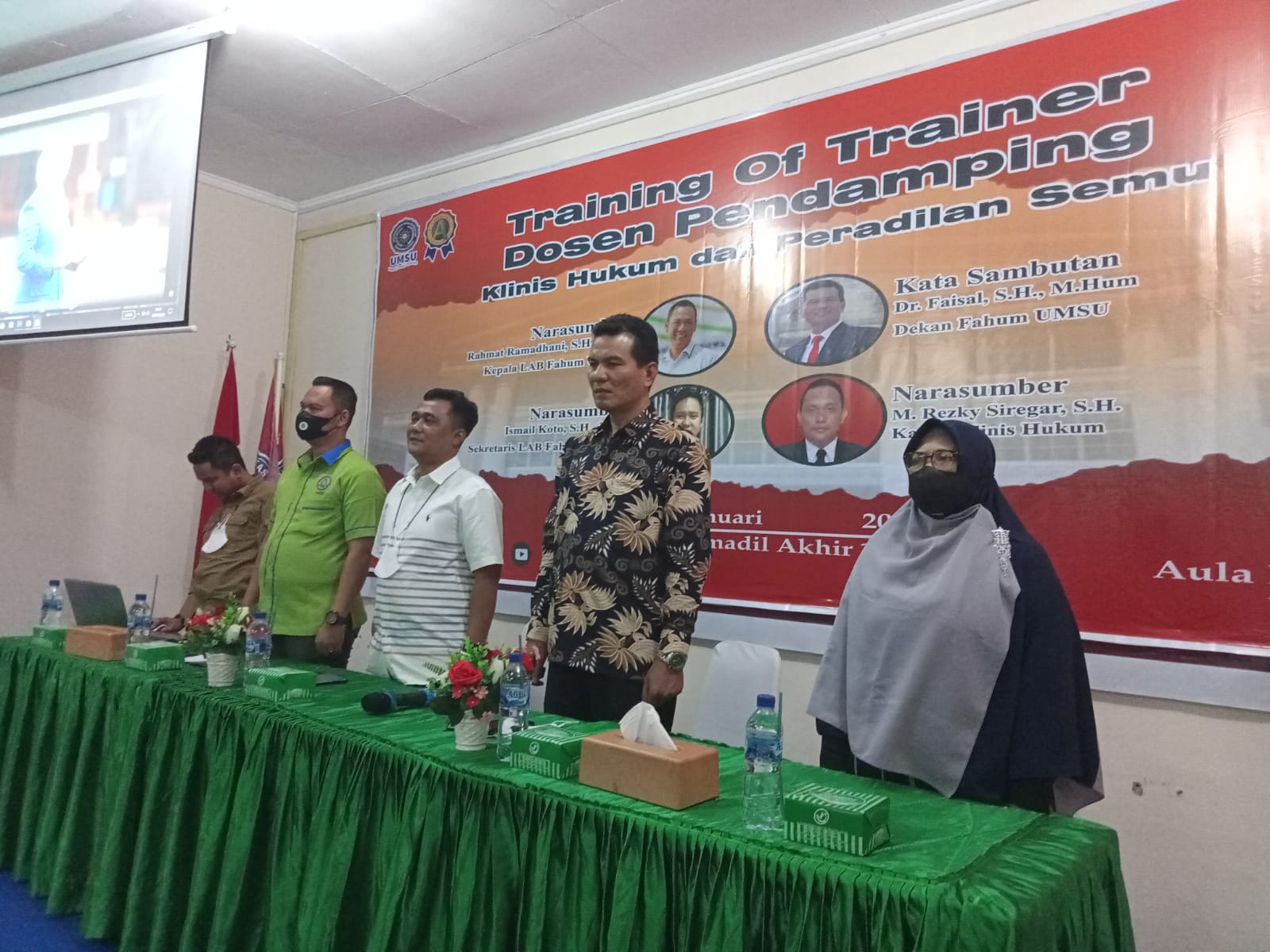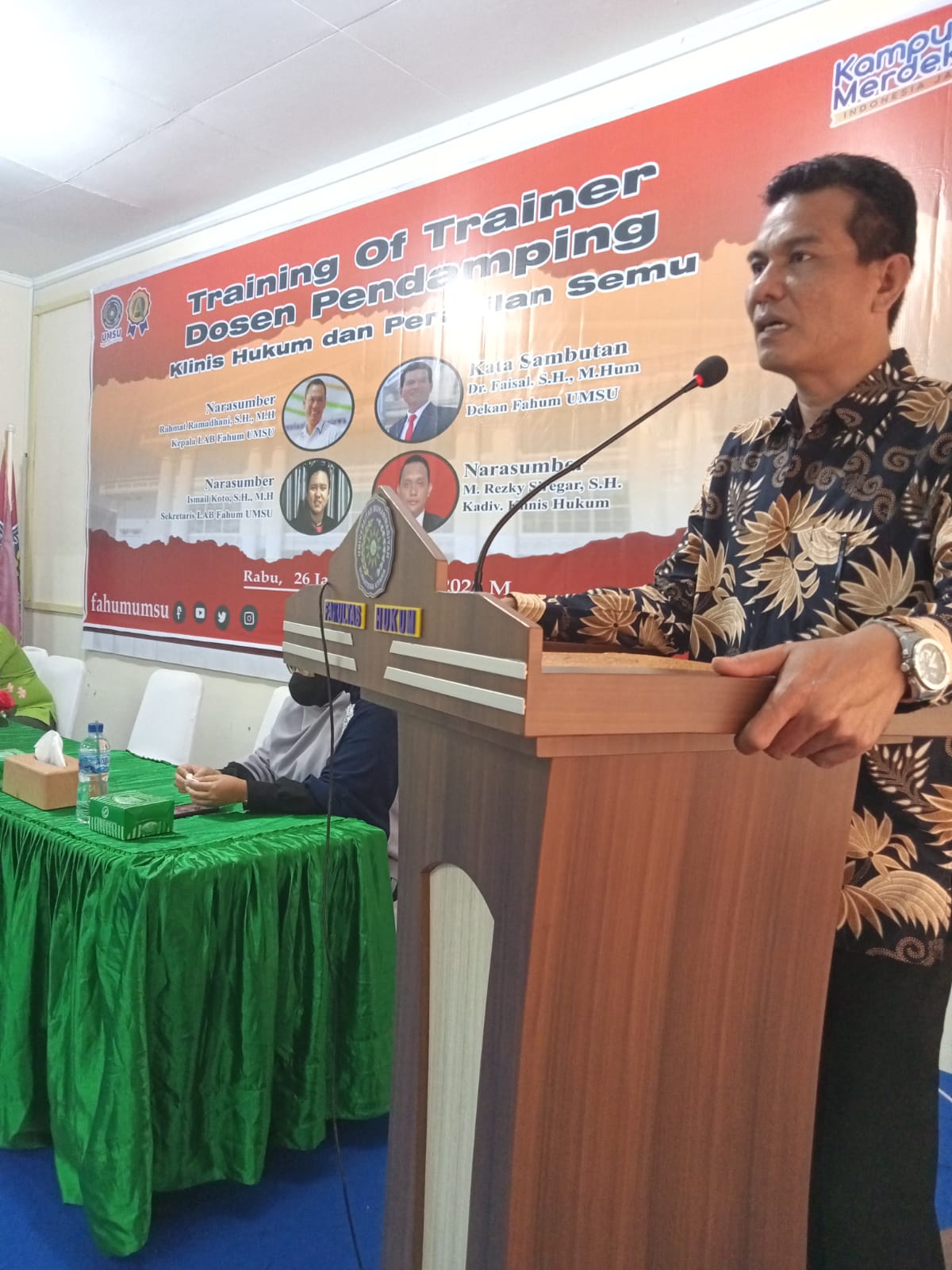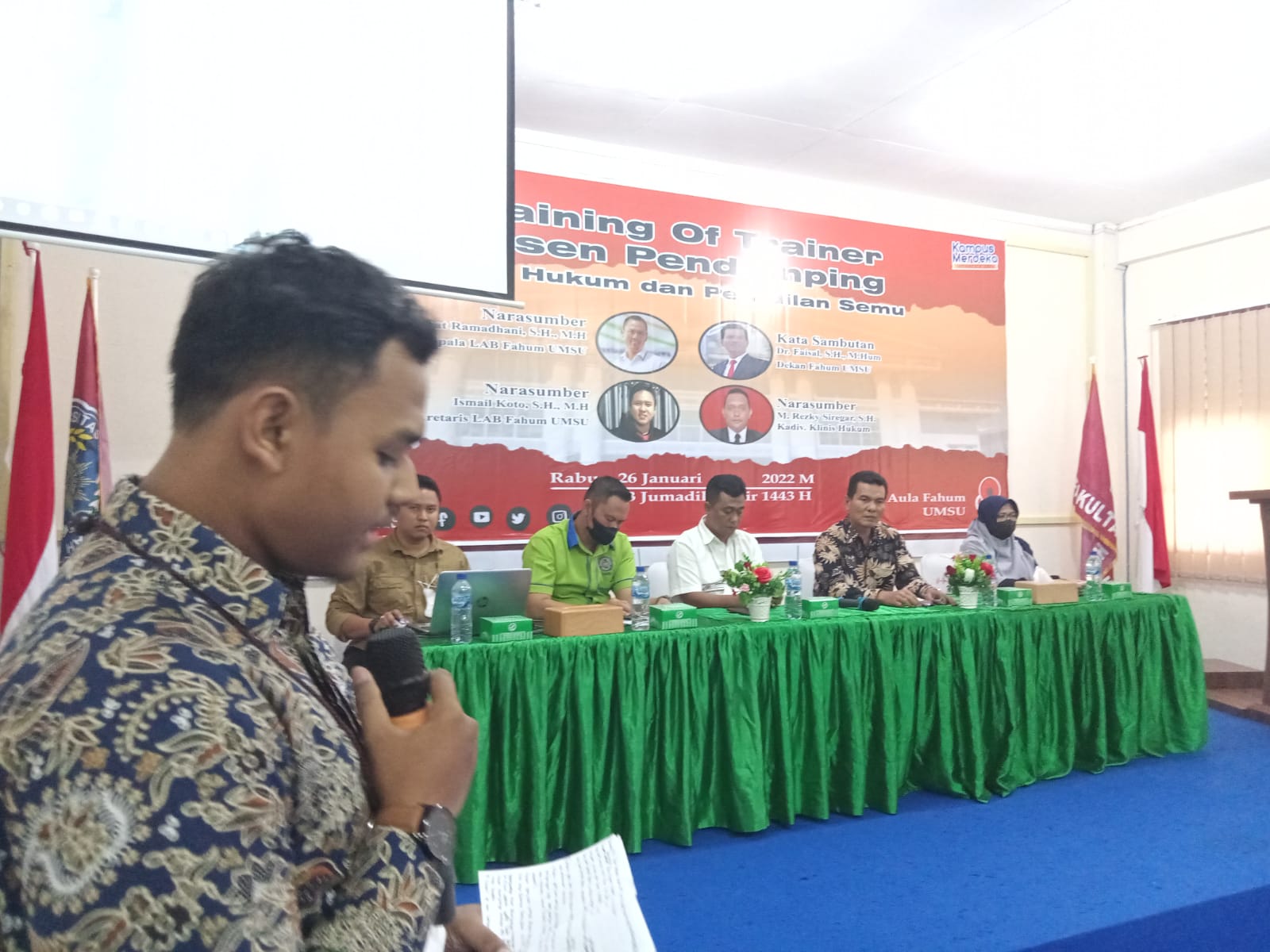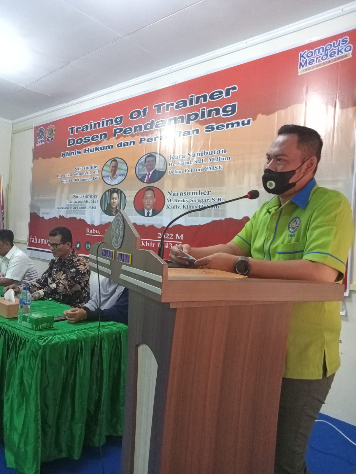 Dekan Fakultas Hukum UMSU (Dr. Faisal, SH, M. Hum), membuka kegiatan Training Of Trainer Dosen Pendamping Klinis Hukum & Peradilan Semu Fakultas Hukum UMSU dengan Narasumber: 1. Rahmat Ramadhani, SH., MH (Ka. LAB Fakultas Hukum UMSU), 2. Ismail Koto, SH., MH (Sekretaris LAB Fakultas Hukum UMSU) dan 3. M. Rezky Siregar, SH (Kadiv. Klinis Hukum).