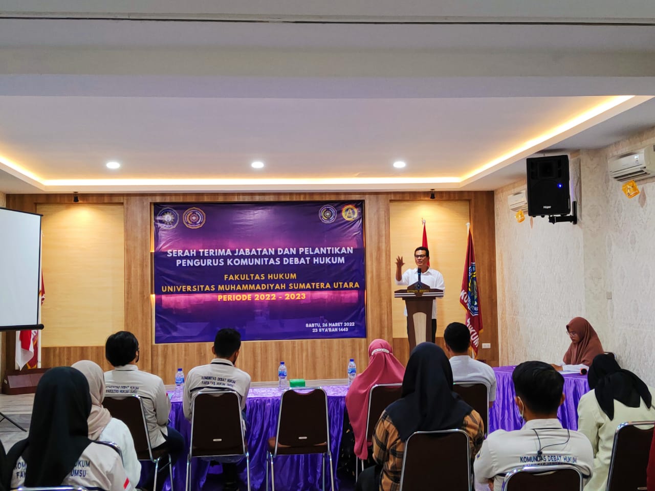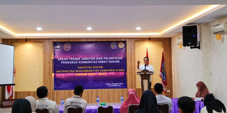 Medan, 27 Maret 2022. Kepengurusan baru KDH FH UMSU resmi di lantik. Pada kegiatan tersebut, hadir pimpinan Fakultas Hukum UMSU dalam hal ini Dekan (Dr. Faisal, S.H., M.Hum), Wakil Dekan I (Dr. Zainuddin, S.H., M.H) dan Wakil Dekan III (Atikah Rahmi, S.H., M.H) dan Dosen Fakultas Hukum UMSU (Ismail Koto, S.H., M.H)