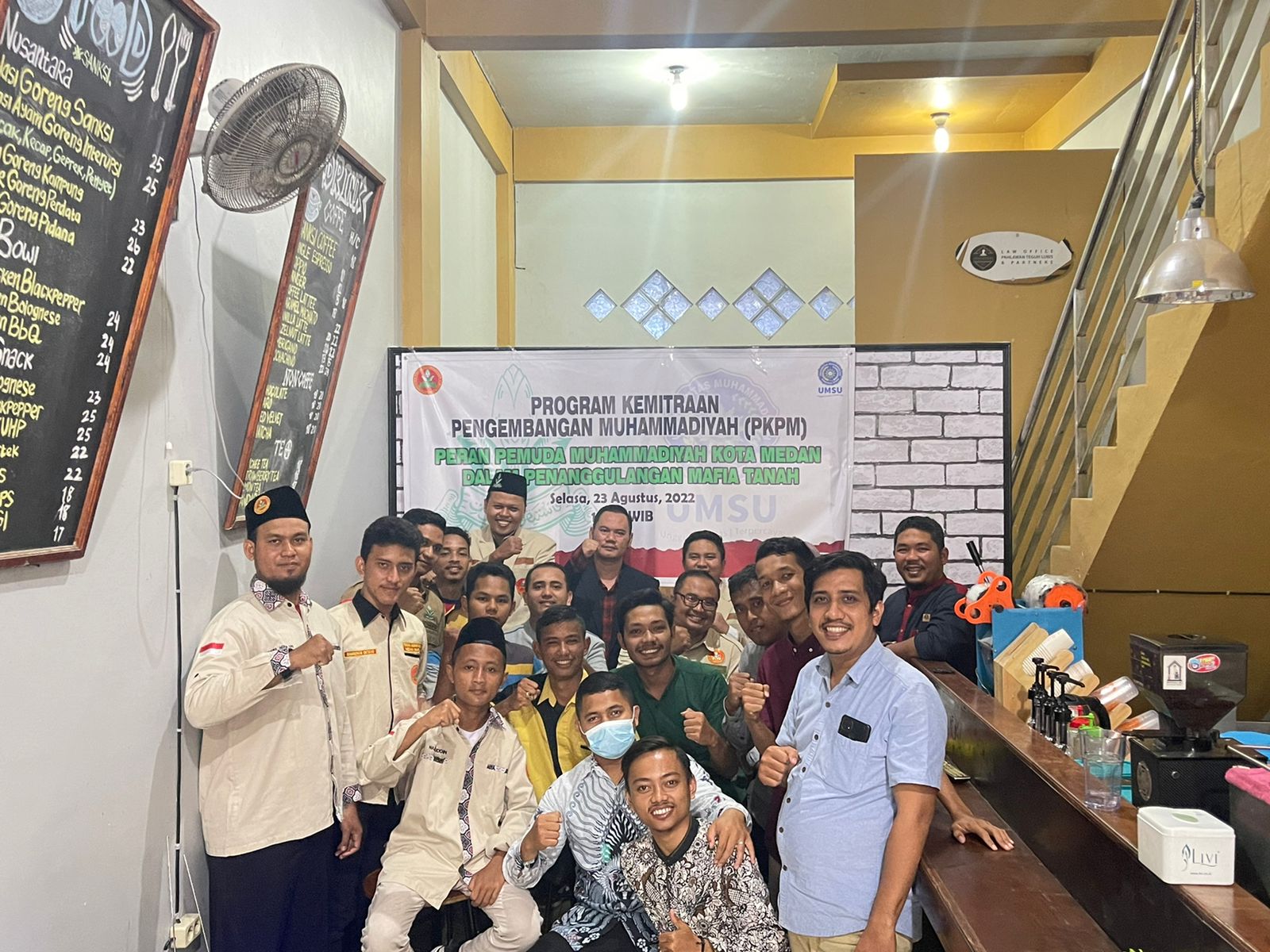 Program Kemitraan Pengembangan Muhammadiyah yang mengangkat tema Peran Pemuda Muhammadiyah Kota Medan Dalam Penanggulangan Mafia Tanah. Adapun yang menjadi Narasumber dalam kegiatan tersebut ialah Rahmat Ramadhani, S.H., M.H, Ismail Koto, S.H., M.H dan Ummi Salamah, S.H., M.Kn yang merupakan Dosen Fakultas Hukum UMSU.