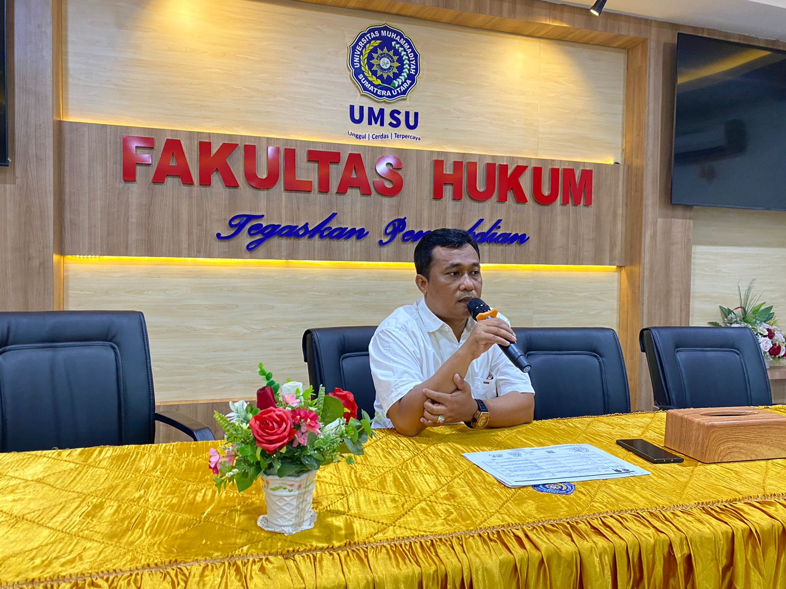 Pada hari ini Selasa, 02/8/2022 Dekan Fakultas Hukum UMSU Dr. Faisal, SH., M.Hum diwakili oleh Wakil Dekan-I Dr. Zainuddin, SH., MH membuka langsung Sidang Meja Hijau Fakultas Hukum UMSU dan membacakan undangan Sidang Meja Hijau nomor: 1042/II.3-AU/UMSU-06/F/2022 di ruang sidang gedung C Lt. I dengan jumlah peserta 11 orang mahasiswa, ditambah dua peserta mahasiswa yang ditunda pelaksanaannya pada sidang hari Kamis (14/7/2022) sebagai peserta yakni: 1. FARIDZ MUAMMAR DASA 1506200291, 2. AULIA RIFGHIAH ISDA 1706200134, 3. YENNI AFRIDA SARI 1806200391, 4. SHERA BANU 1806200392, 5. MUHAMMAD ARIF RAHMAN SIREGAR 1806200359, 6. FASYA RAMANDA PUTRA 1806200374, 7. SAID AKBAR PARLINDUNGAN RAMBE 1806200419, 8. MUHAMMAD FADIL SUHADA 1806200010, 9. LAILATUL RAHMAN SIMBOLON 1806200284, 10. ANNISA NABILA 1806200416, 11. NUR ASFINA ZAHARA 1506200278, 12. EGYA RAMADHAN 1706200279, 13. INDAH PERMATA SARI 1706200116.
