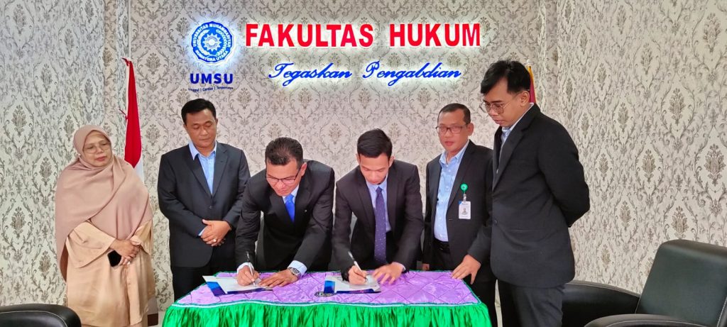 Penandatanganan kesepakatan kerjasama ini dilakukan di biro Fakultas Hukum universitas Muhammadiyah Sumatera Utara. Dalam penandatanganan kesepakatan kerjasama tersebut, Dekan Fakultas Hukum Dr Faisal, S.H., M.Hum didampingi oleh Wakil Dekan 1 Dr. Zainuddin, S.H., M.H dan Wakil Dekan 3 Atikah Rahmi, S.H., M.H, demikian juga Fakultas Ilmu Komputer & Teknologi Informasi, yang hadir dalam penandatanganan kesepakatan kerjasama tersebut adalah Dekan dan di dampingi oleh para Wakil Dekan