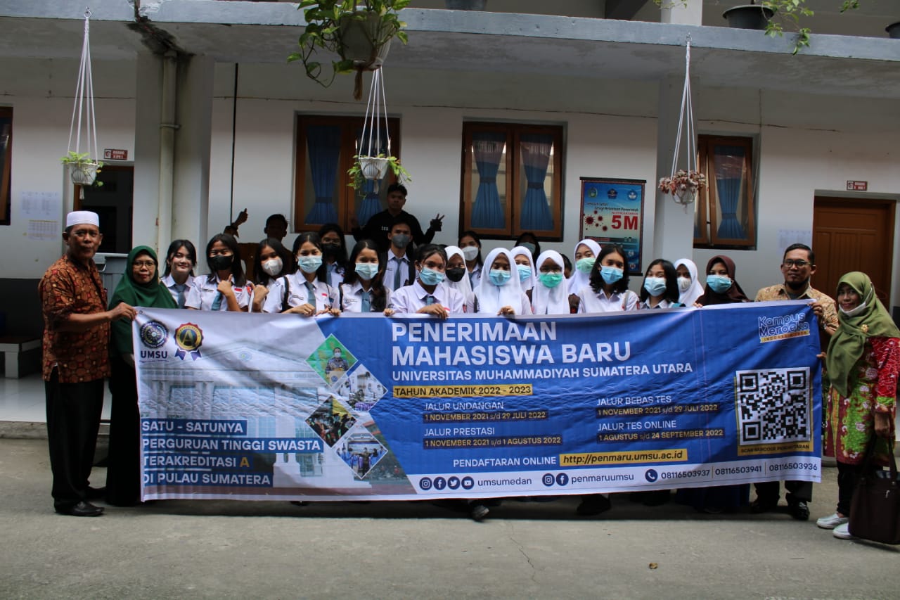 di Universitas Muhammadiyah Sumatera Utara (UMSU) juga tersedia Beasiswa bagi Atlet Daerah, Nasional serta Internasional dan juga Beasiswa Tahfiz. dalam kunjungan ini Atikah Rahmi, SH., MH (Wakil Dekan-III) Fakultas Hukum UMSU berphoto bersama dengan para Guru, Kepala Sekolah dan Siswa/siswi sekaligus memberikan Cendramata sebagai ucapan terimakasih. dilaksanakan pada hari Rabu dan Kamis, 26-27 Januari 2022.