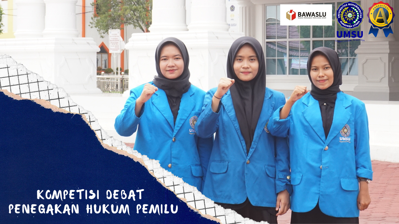 Medan, Mahasiswa Fakultas Hukum Muhammadiyah Sumatera Utara (UMSU), Devi Arma Yanti, Devi Marlinda Br Purba dan Dyah Harum Surtikanti, yang tergabung dalam Komunitas Debat Hukum Fakultas Hukum UMSU berhasil lolos tahap Eliminasi Kompetisi Debat Penegakan Hukum Pemilu antar perguruan tinggi se Indonesia ke-II yang diadakan oleh BAWASLU RI.