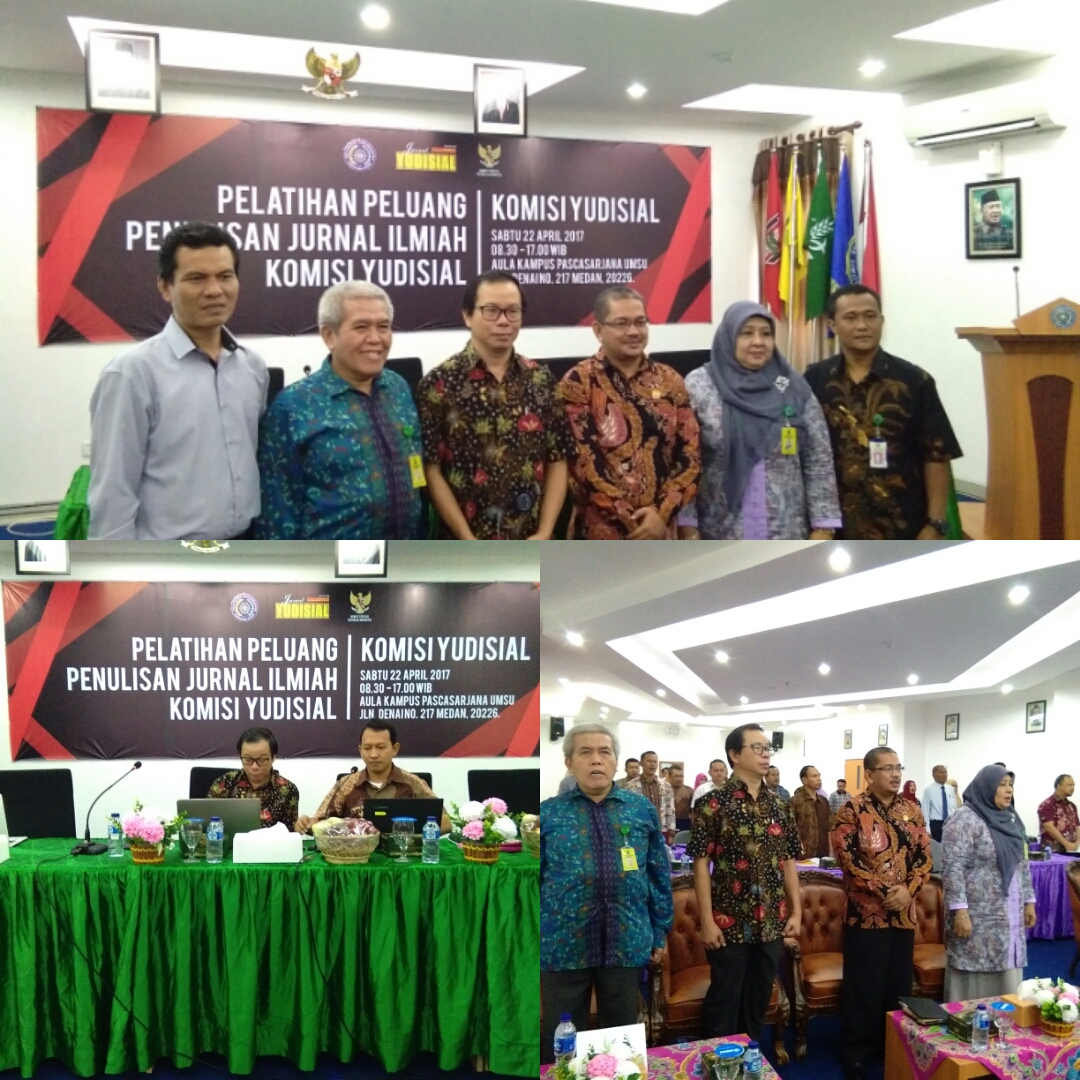 Sehubungan dalam meningkatkan mutu pendidikan tinggi khususnya dalam penelitian dan pengembangan minat penulisan jurnal ilmiah dan penelitian dikalangan dosen dan mahasiswa Fakultas Hukum Universitas Muhammadiyah Sumatera Utara, bekerjasama dengan Komisi Yudisial (KY) Republik Indonesia pada hari ini mengadakan “Pelatihan dan Peluang Penulisan Jurnal Ilmiah Komisi Yudisial” bertempat di Auditorium Kampus Pascasarjana UMSU Jl. Denai No. 217 Medan. Dengan narasumber Dr. Sidharta, SH., MH.
