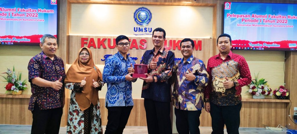 Senin, 27 Juni 2022 Fakultas Hukum UMSU melaksanakan kegiatan pelepasan alumni periode I Tahun 2022, acara pelepasan alumni ini dihadiri oleh Dekan FH UMSU Dr. Faisal., S.H.,M.Hum, Wakil Dekan I Dr. Zainuddin, S.H., M.H dan Wakil Dekan III Atikah Rahmi, S.H., M.H. dan kepala bagian dilingkungan Fakultas Hukum UMSU.