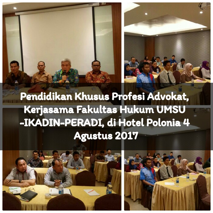 Acara pembukaan Pendidikan Khusus Profesi Advokat, kerjasama Fakultas Hukum UMSU-IKADIN-PERADI, di Hotel Polonia 4 Agustus 2017.
