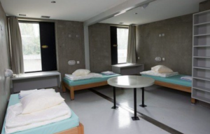 Sel penjara ini muat untuk tiga orang. Kasur dan ruangan kamarnya sangat nyaman. Penjara ini lebih mirip asrama mahasiswa.