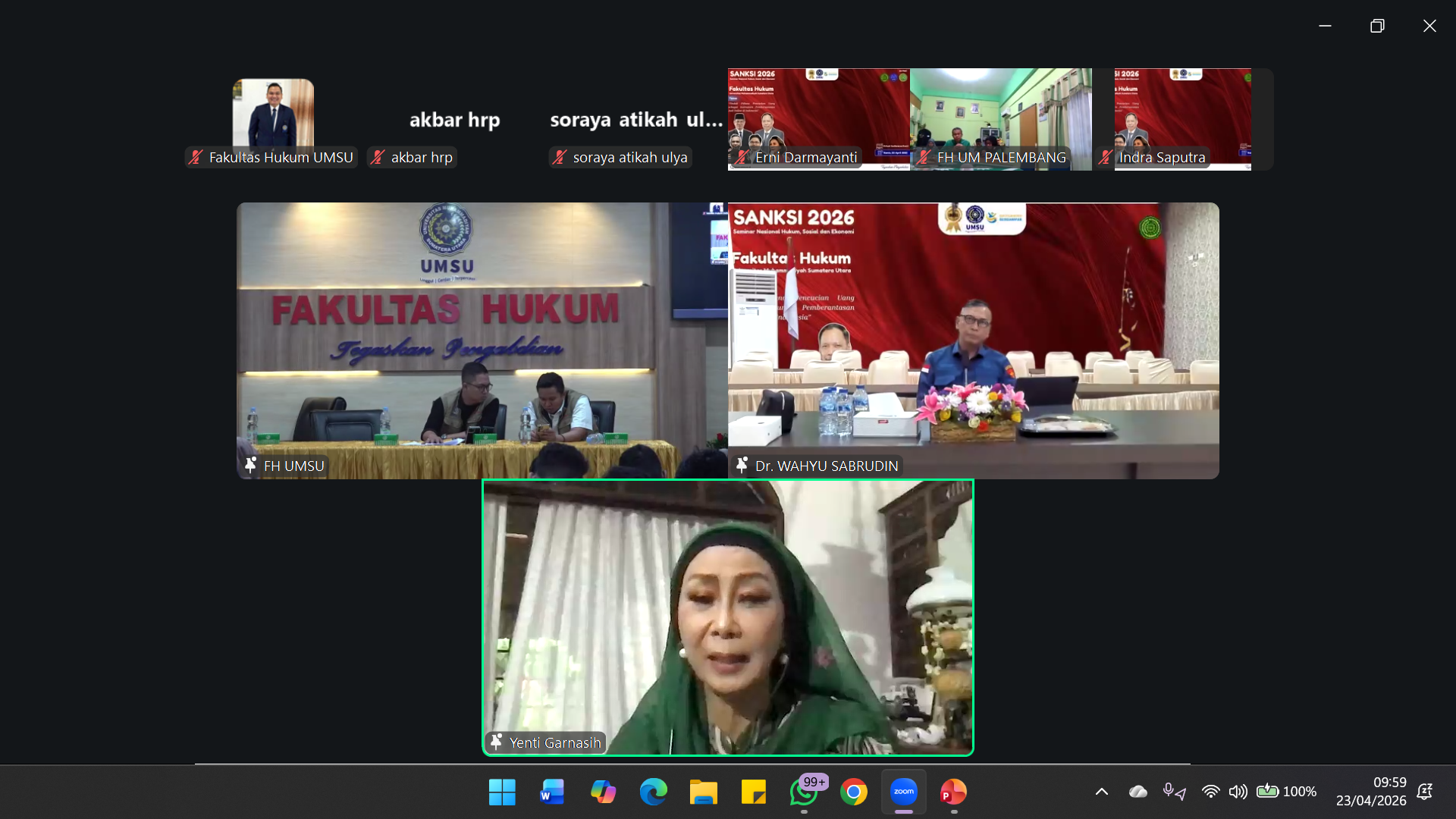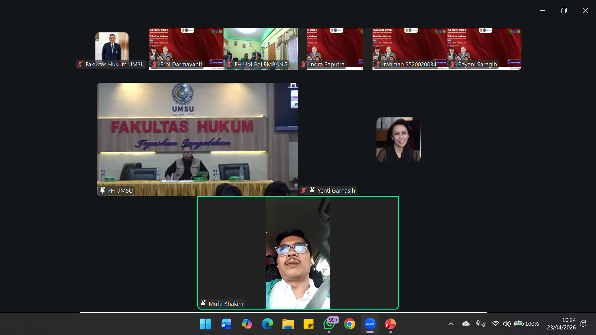 Seminar Nasional Hukum, Sosial, dan Ekonomi SANKSI 2026 yang diselenggarakan oleh Fakultas Hukum Universitas Muhammadiyah Sumatera Utara (UMSU) berlangsung dengan penuh antusiasme dari para peserta, baik yang hadir secara langsung maupun yang mengikuti secara daring.