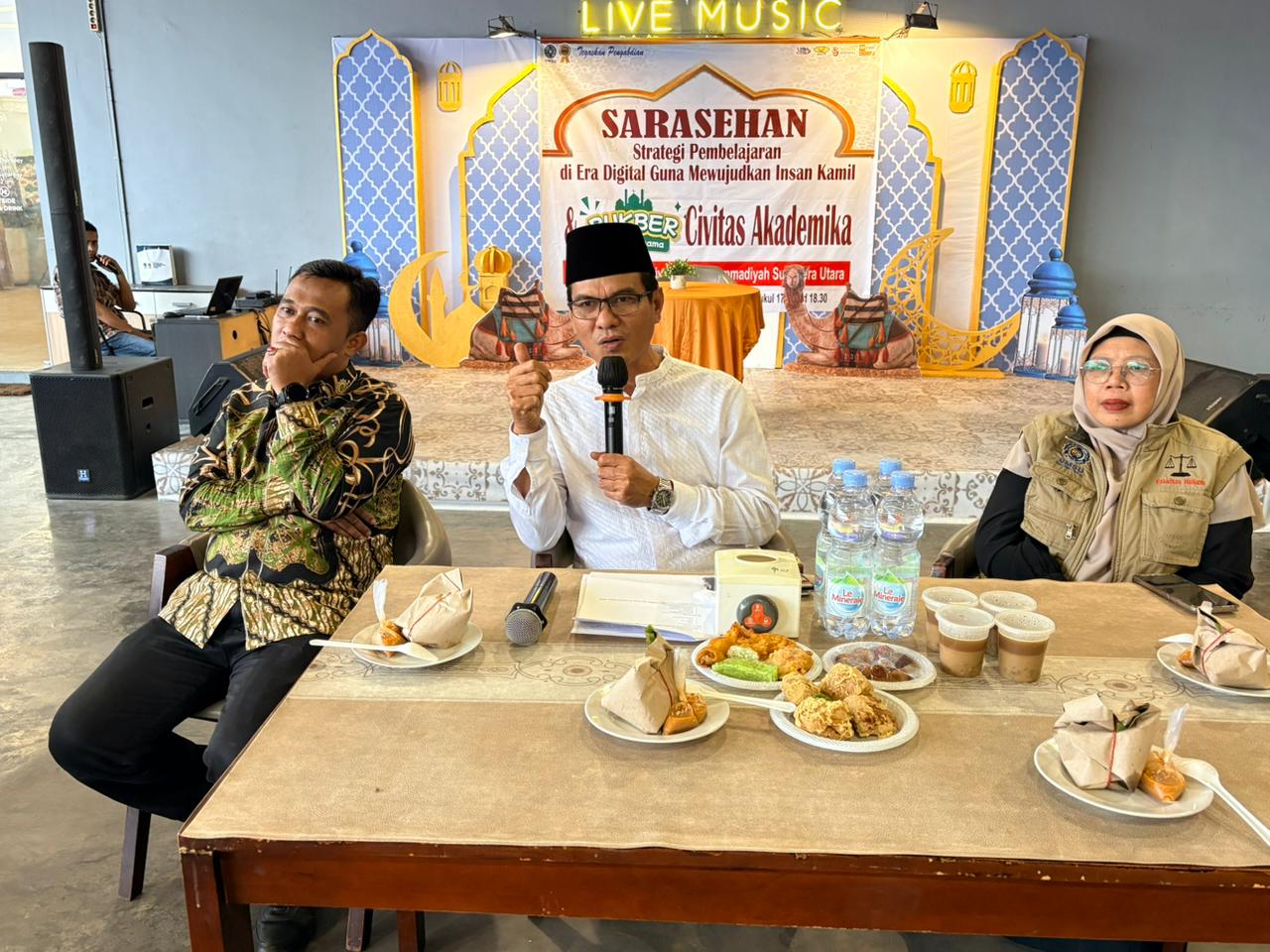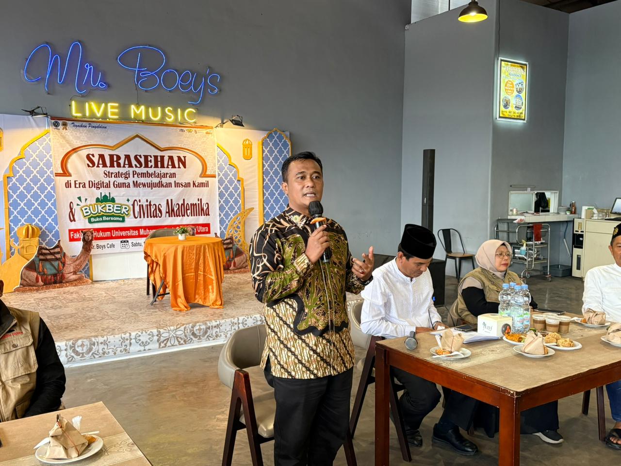 Sabtu, 14 maret 2026. Fakultas Hukum melaksanakan SARASEHAN bagi Dosen dan Tenaga Pendidik dengan tema “Strategi Pembelajaran di Era Digital Guna Mewujudkan Insan Kamil”. Kegiatan tersebut merupakan pembuka sebelum dilakukannya Buka Puasa Bersama dengan Dosen, Tenaga Pendidik, Lembaga Bantuan Hukum, CS serta Kolega dan Media pers yang bekerjasama dengan Fakultas Hukum di Boey’s Cafe, Medan.